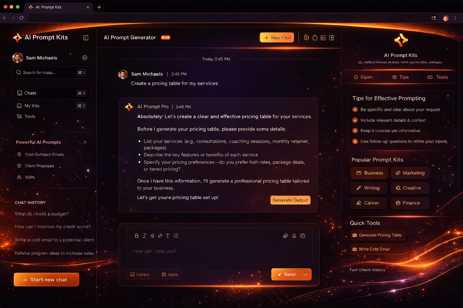 Choose from a range of expertly crafted prompt kits designed to help you achieve better results faster and more efficiently.